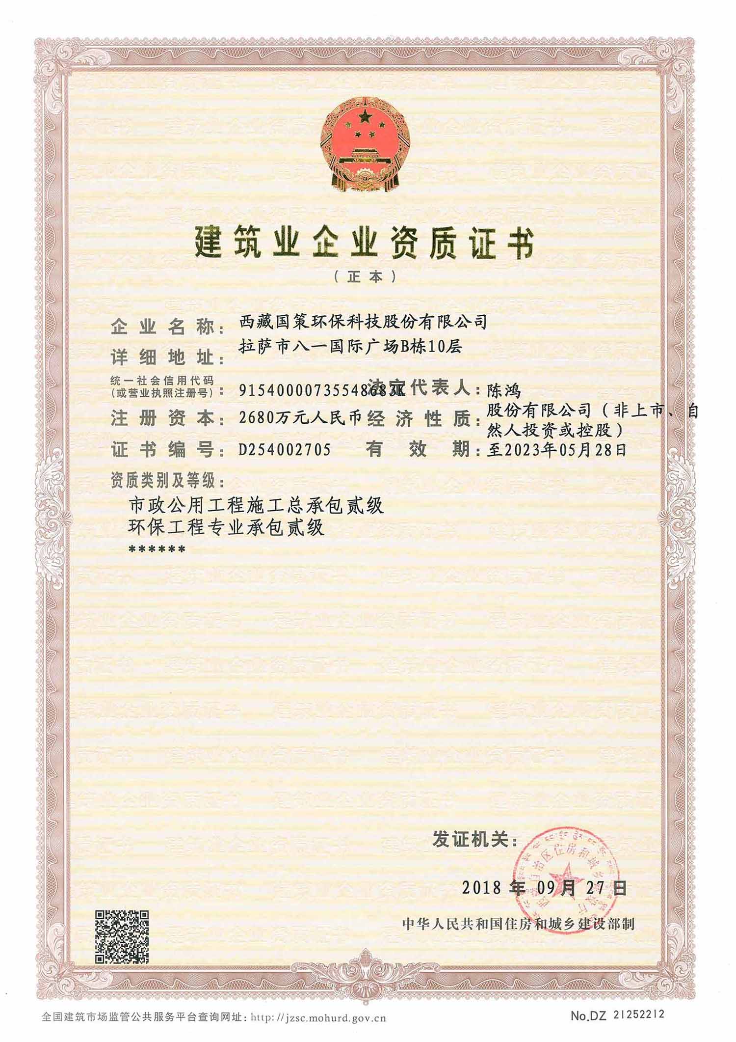 國(guó)策環(huán)保擁有住房和城鄉(xiāng)建設(shè)部頒發(fā)的建筑業(yè)企業(yè)市政公用工程施工總承包貳級(jí)資質(zhì)、環(huán)保工程專(zhuān)業(yè)承包貳級(jí)資質(zhì),同時(shí)擁有環(huán)保、市政、機(jī)電等各類(lèi)專(zhuān)業(yè)工程技術(shù)人員共計(jì)40余人,并先后承擔(dān)了眾多污水廠(chǎng)、垃圾填埋場(chǎng)、自來(lái)水廠(chǎng)、醫(yī)療廢物處置中心等項(xiàng)目的施工任務(wù)。